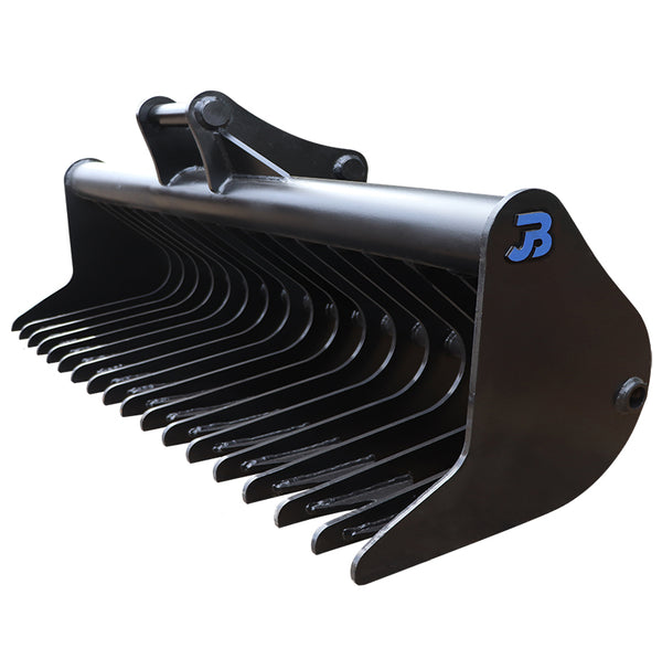 The shape has been designed and tested for optimal performance when handling material. Unlike a standard ditching bucket curve, the side plates have an angular profile to provide maximum efficiency when sorting, picking and carrying. The internal tines are positioned at 3” spacing's (other spacing's available on special order). With 8 mm tine tips that are able to infiltrate the ground it makes it a perfect tool for finishing work as well as general sorting.