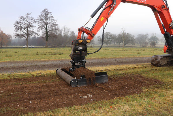 Featuring a rigid and strong steel structure, the grading beams are ideal for use on a range of hard, soft, dry or wet materials such as earth or aggregate. They are ideally suited for use with modern tiltrotators, but can be supplied with standard welded or bolt on linkages to suit traditional UK quick hitches, as well as with a hydraulic tilting function.