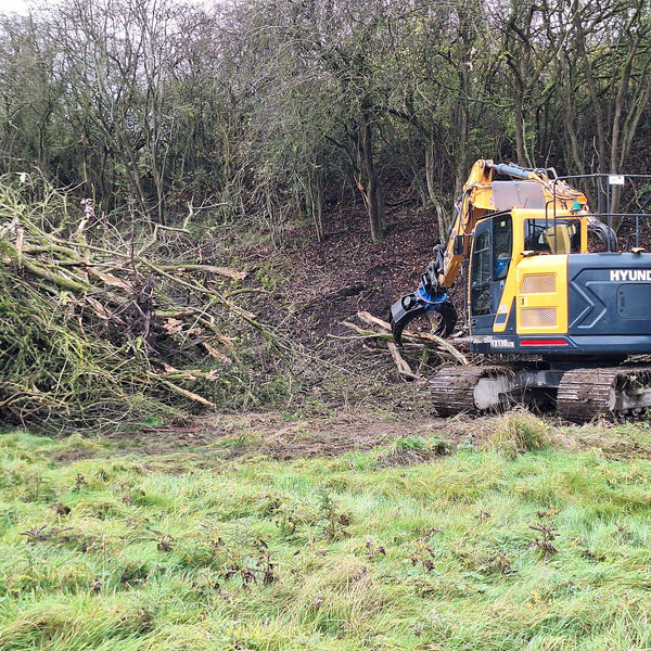 The video below demonstrates the same 10-16 Tonne General & Forestry Grab - with hydraulic rotation - fitted onto a Hitachi ZX130. The fixed model as listed on this page is the same grapple, just simply without the hydraulic rotation.