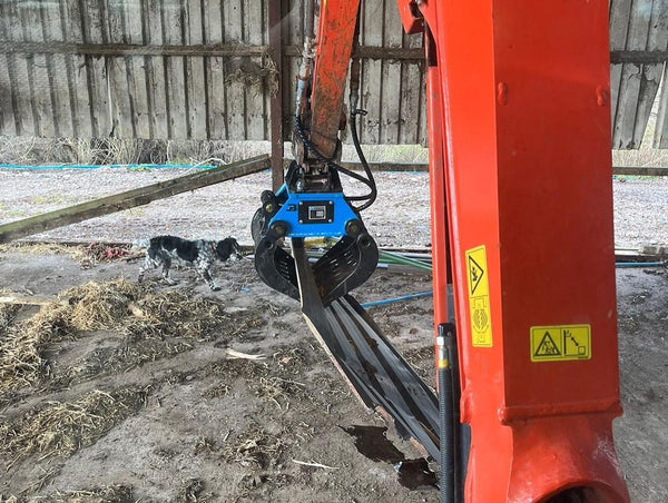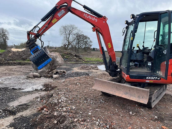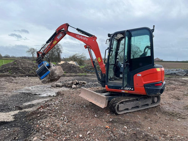 The JB equipment SG2 selector grab is a hydraulic grab best suited to excavators from 2 to 3 tonne such a JCB 8025 or Kubota KX61-3. It is a heavy duty attachment commonly used in varying applications such as demolition, waste handling and general sorting.