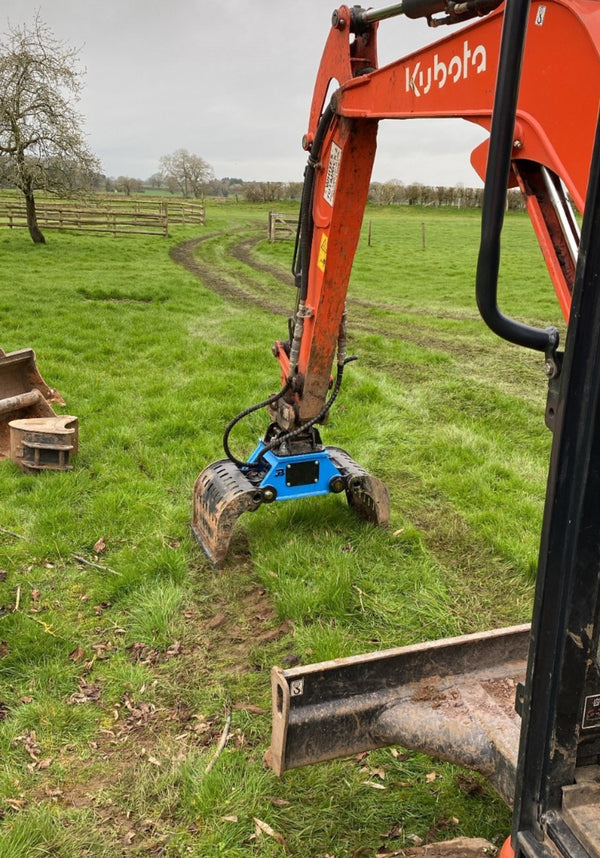 This is a non-rotating grab and runs simply off the excavators double acting hydraulic hammer circuit. Unlike rotating grabs it does not require a second hydraulic service which helps reduce the comparative cost.