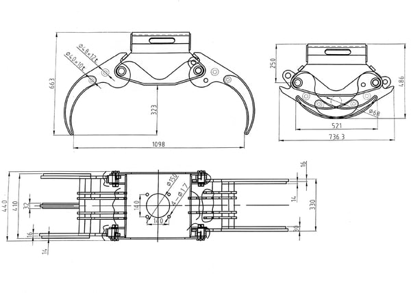 The BC140 non-rotating / fixed configuration is supplied with a standard 2 pin quick headstock or two way cross link (depending on the excavator) enabling the grab to be used in either orientation. Rotating models are supplied with a high quality forestry specification rotator and standard 2 pin head stock.