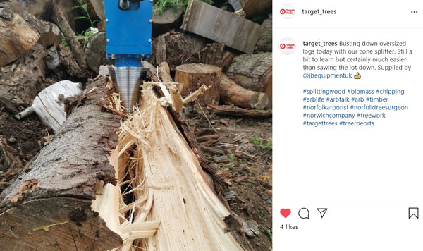The cone splitter attachment requires only one man and machine to break down commercial volumes of large timber, in a fraction of the time and cost compared to more labour intensive alternatives. If you are a commercial firewood producer or just have your own timber to split, investing in a hydraulic cone splitter attachment will pay dividends. Hire it out to local customers or self drive per hour at other farms or timber yards and you will experience the benefits of this hugely underrated attachment for yourself!
