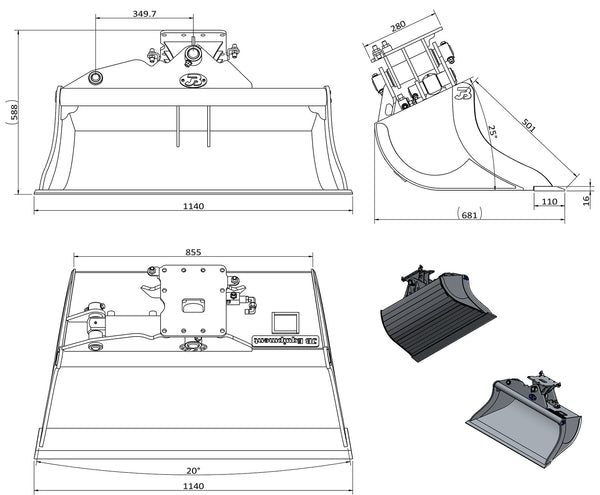 This page is for the 2-3 tonne excavator hydraulic tilting bucket - modelSTB-2S to suit2-3 tonne excavators