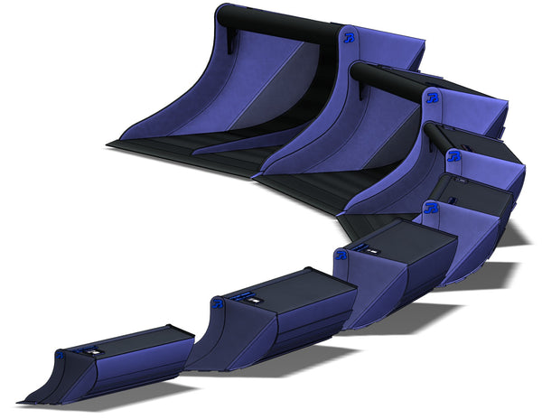 Scandinavian grading buckets are increasingly popular due to their profiled and angular design, which both increases bucket volume and enables greater accuracy when pouring material at an angle or working against obstacles such as a fence or wall.