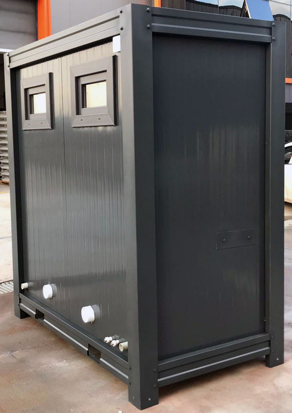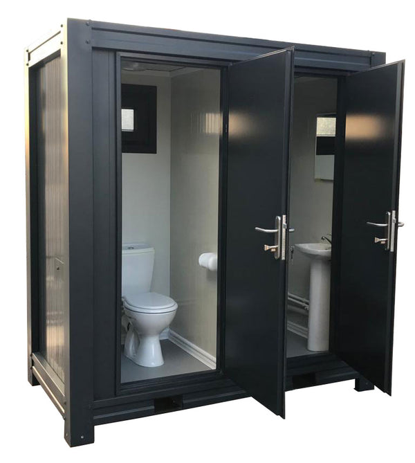 Our double cubicle toilets are made of steel composite panels with a layer of thermal insulation foam. They are ideal for use on campsites or semi-permanent commercial applications.