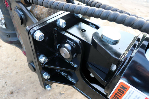 All of our attachments are supplied with a standard 2 pin excavator linkage similar to the photo below, which is often unique according to your make and model of excavator. In nearly all cases, we will reach out to you (normally via email) to confirm your pin dimensions to ensure correct fitment. If this is not possible for any reason and we are not advised otherwise, we will supply the standard OEM measurements that we have on file for your excavator and assume that you have a quick hitch fitted.