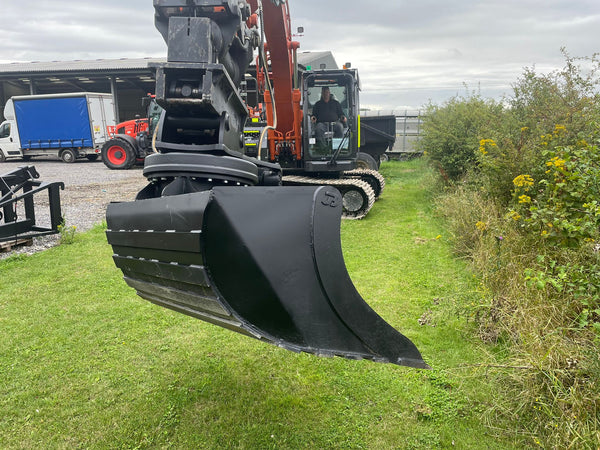 A quality excavating and landscaping attachment for mini and micro excavators. This Scandinavian style excavator grading bucket features a hardened HB400 cutting edge and high tensile steel throughout.