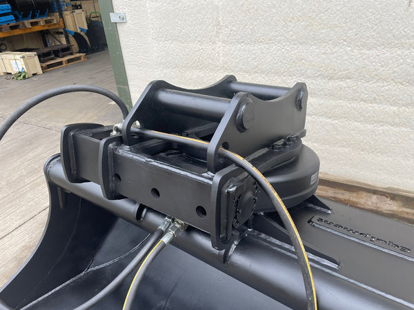 All of our attachments are supplied with a standard 2 pin excavator linkage similar to the photo below, which is often unique according to your make and model of excavator. In nearly all cases, we will reach out to you (normally via email) to confirm your pin dimensions to ensure correct fitment. If this is not possible for any reason and we are not advised otherwise, we will supply the standard OEM measurements that we have on file for your excavator and assume that you have a quick hitch fitted.