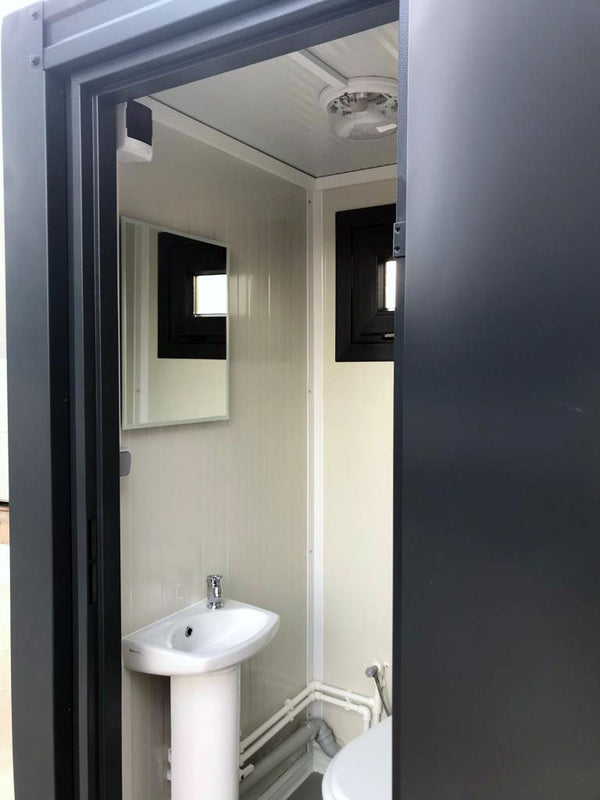 The anthracite single prefab toilet block comes complete with:
