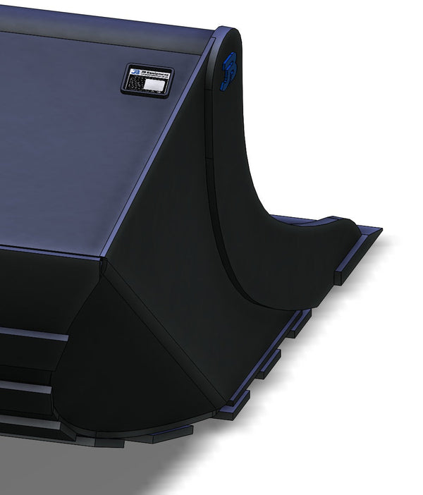Scandinavian grading buckets are increasingly popular due to their profiled and angular design, which both increases bucket volume and enables greater accuracy when pouring material at an angle or working against obstacles such as a fence or wall.